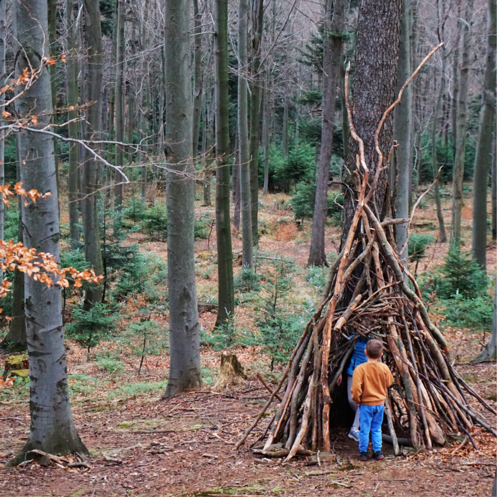 Nie wszystko wychodzi za pierwszym razem – i to jest w porządku! Podczas zabawy na świeżym powietrzu pozwól dziecku eksperymentować, np. zbudować szałas, który się przewróci albo znaleźć własny sposób na pokonanie stromego podejścia. Każda porażka to cenna lekcja i krok do większej pewności siebie. Nie komentujmy porażek – przecież błędy to integralna część procesu nauki. Spróbujcie zbudować szałas w lesie lub Waszym ogrodzie.