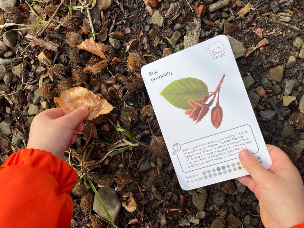 Pamiętam, jak w dzieciństwie podczas spacerów po lesie pytałam co to za drzewo. Tato zawsze znał odpowiedź, a ja zastanawiałam się skąd on to wie. Drugą myślą było: „też tak chcę!”. Teraz, jak już sama mam dzieci, jestem z siebie dumna mogąc odpowiadać na ich pytania. Dokładnie te same, które zadawałam ja jako dziecko. Okazało się, że ta wiedza wcale nie jest tajemna. Ba! Nawet jest ona łatwo dostępna, a my stworzyliśmy unikatową pomoc – Karty Spacerowe Drzewa NANUKI, dzięki której dzieci same mogą rozpoznawać drzewa wokół siebie!