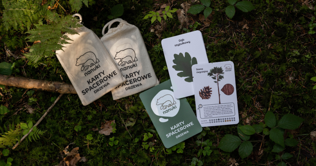 Nasze Karty Spacerowe DRZEWA są świetnym narzędziem, aby wprowadzić dzieci w świat przyrody. Pokazać im jakie drzewa rosną w pobliskim lesie. Które z nich produkują najwięcej tlenu, które gubią liście jesienią, a które pozostają zielone przez zimę. Karty pomogą im rozpoznać drzewo po liściach, ale również po korze czy owocach! Ciekawe fakty na ich temat na długo pozostaną w pamięci, a dzieci bedą mogły nauczyć się czegoś nowego w ulubiony sposób – przez zabawę!
