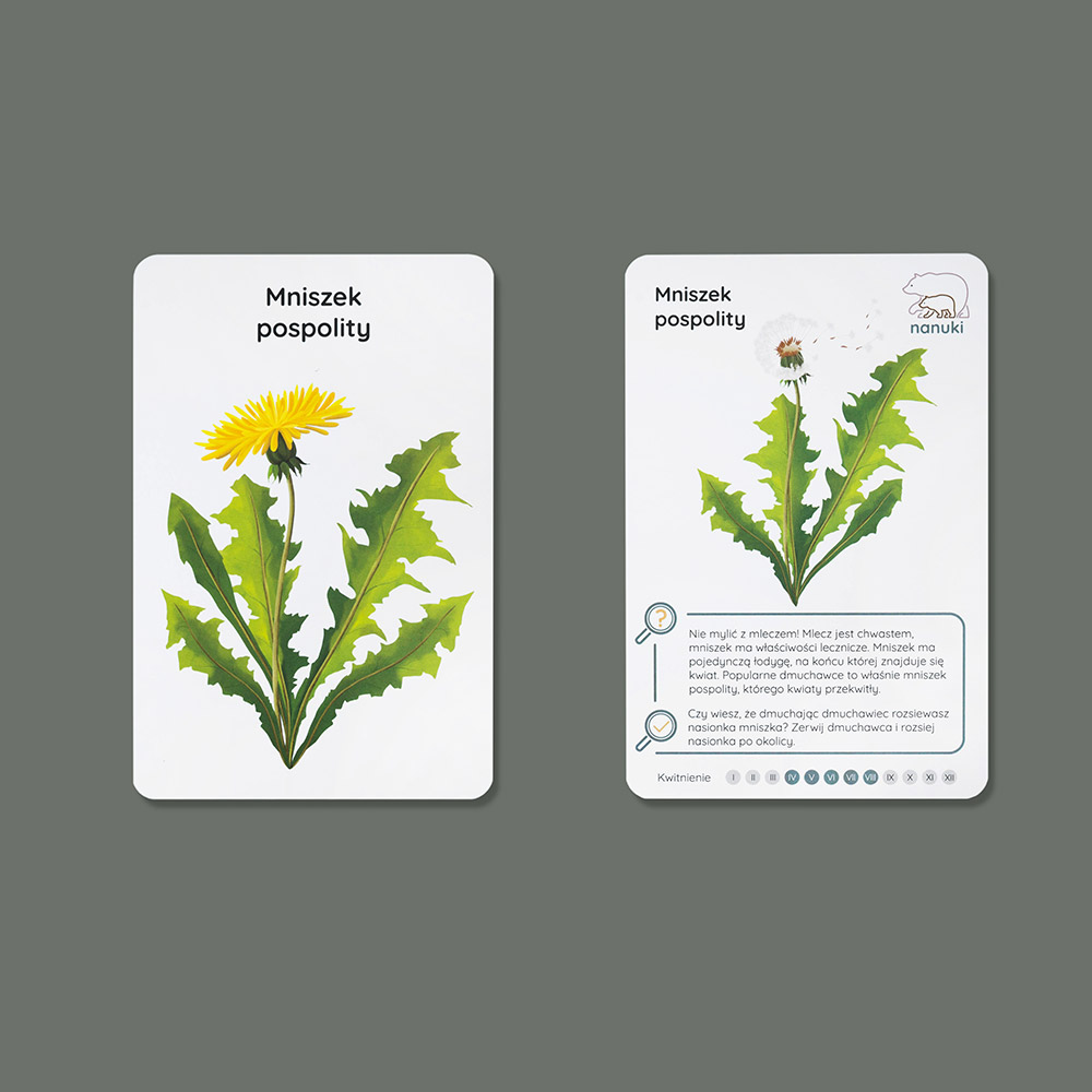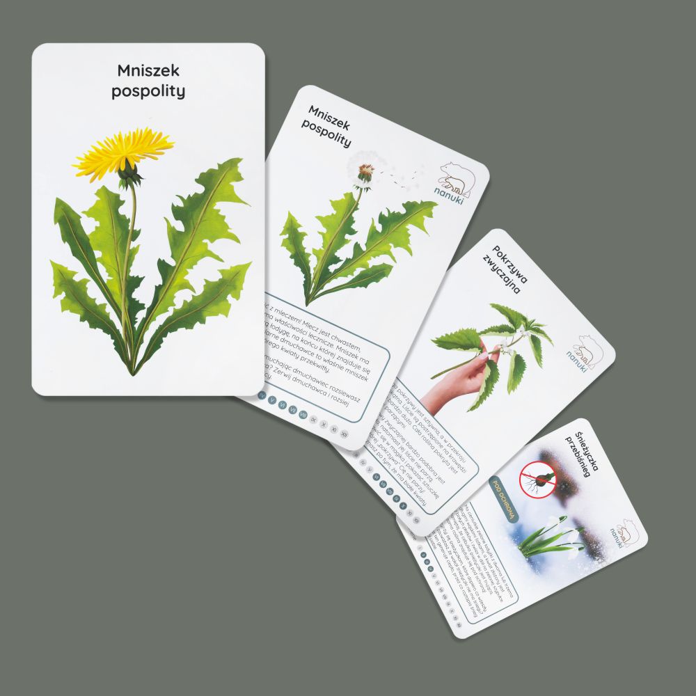 Na odwrocie kart znajdziesz ciekawostki, informacje o okresie kwitnienia i dodatkowe ilustracje. Wiedza przekazana jest w prosty, przyjazny sposób, aby korzystanie z kart było przyjemnością.