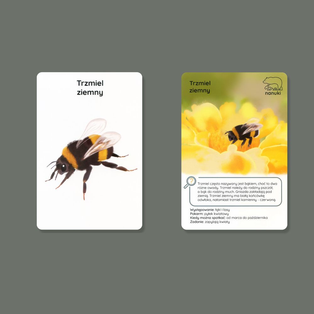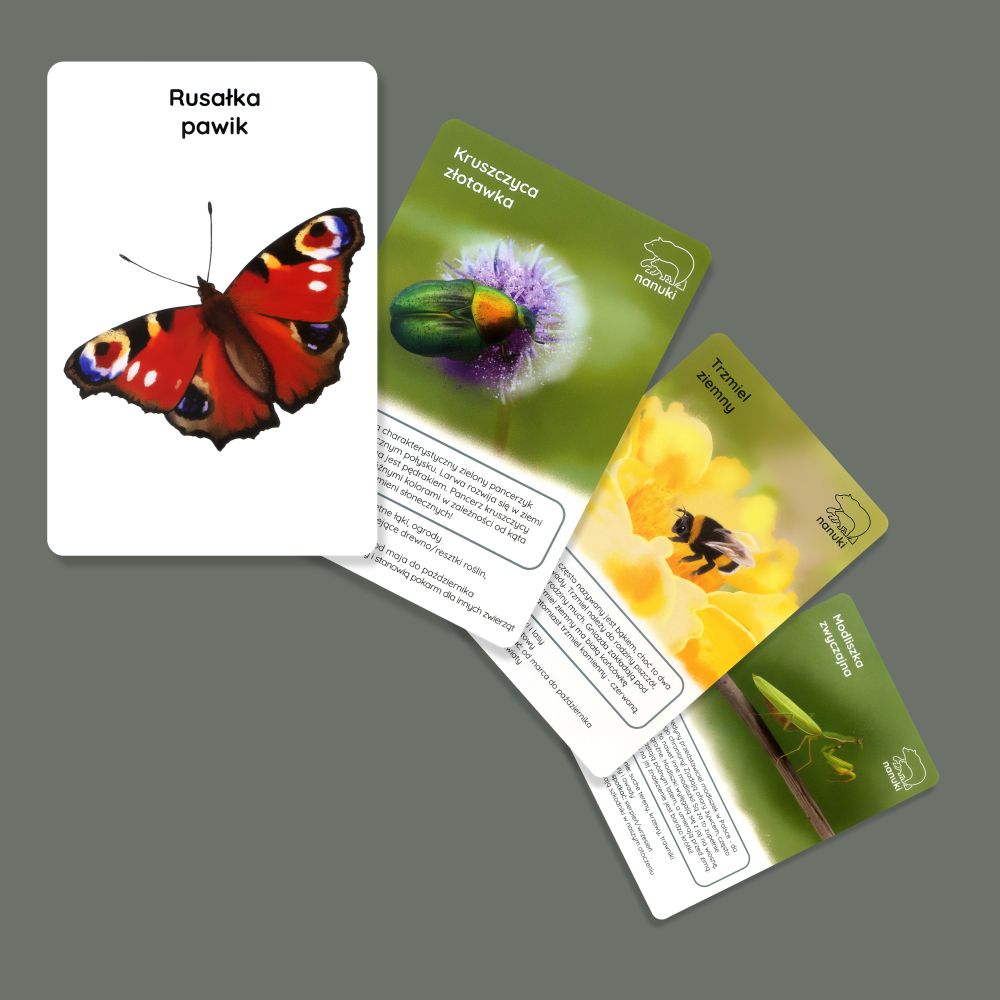 Na każdej karcie znajduje się autorska ilustracja i nazwa owada. Na odwrocie zapisane są ciekawostki i krótkie informacje w przystępnej formie. Dzięki temu dziecko uczy się w prosty i naturalny sposób.